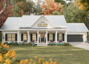 Here’s a compact modern farmhouse design that packs comfort into 1,004 square feet. With two bedrooms, two baths, and generous...