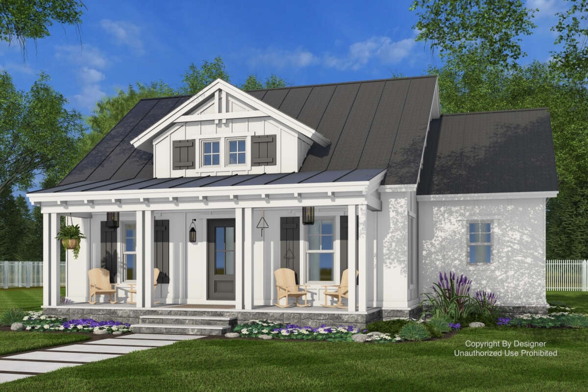 With two bedrooms, two baths, and generous porches, it strikes a balance between cozy scale and full-function living.