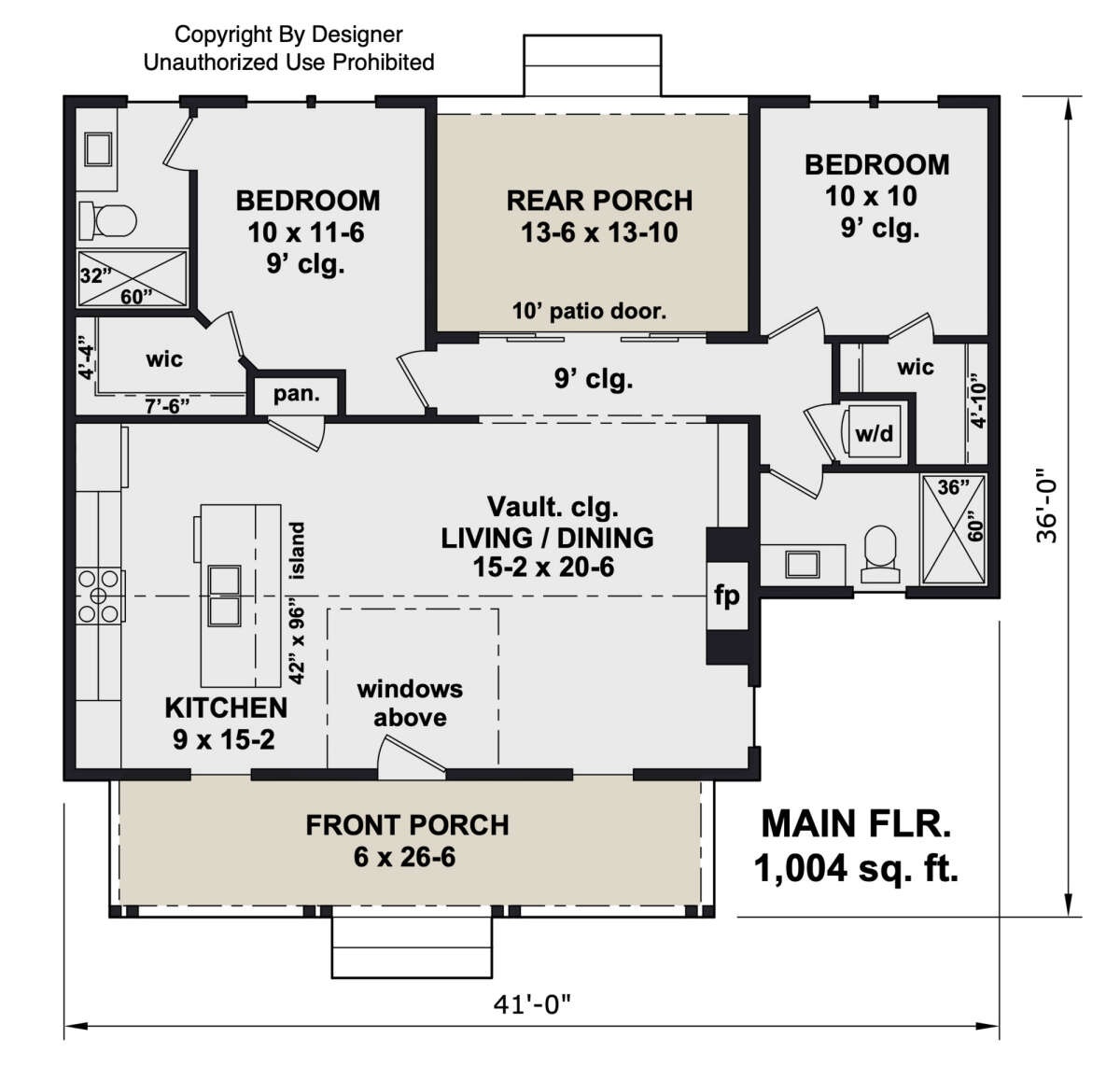 The design features a welcoming front porch and a back porch that together total ~345 sq ft. 10 The covered front porch provides curb appeal and a place to relax outdoors. The rear porch offers connection to the yard and ideal outdoor living space.