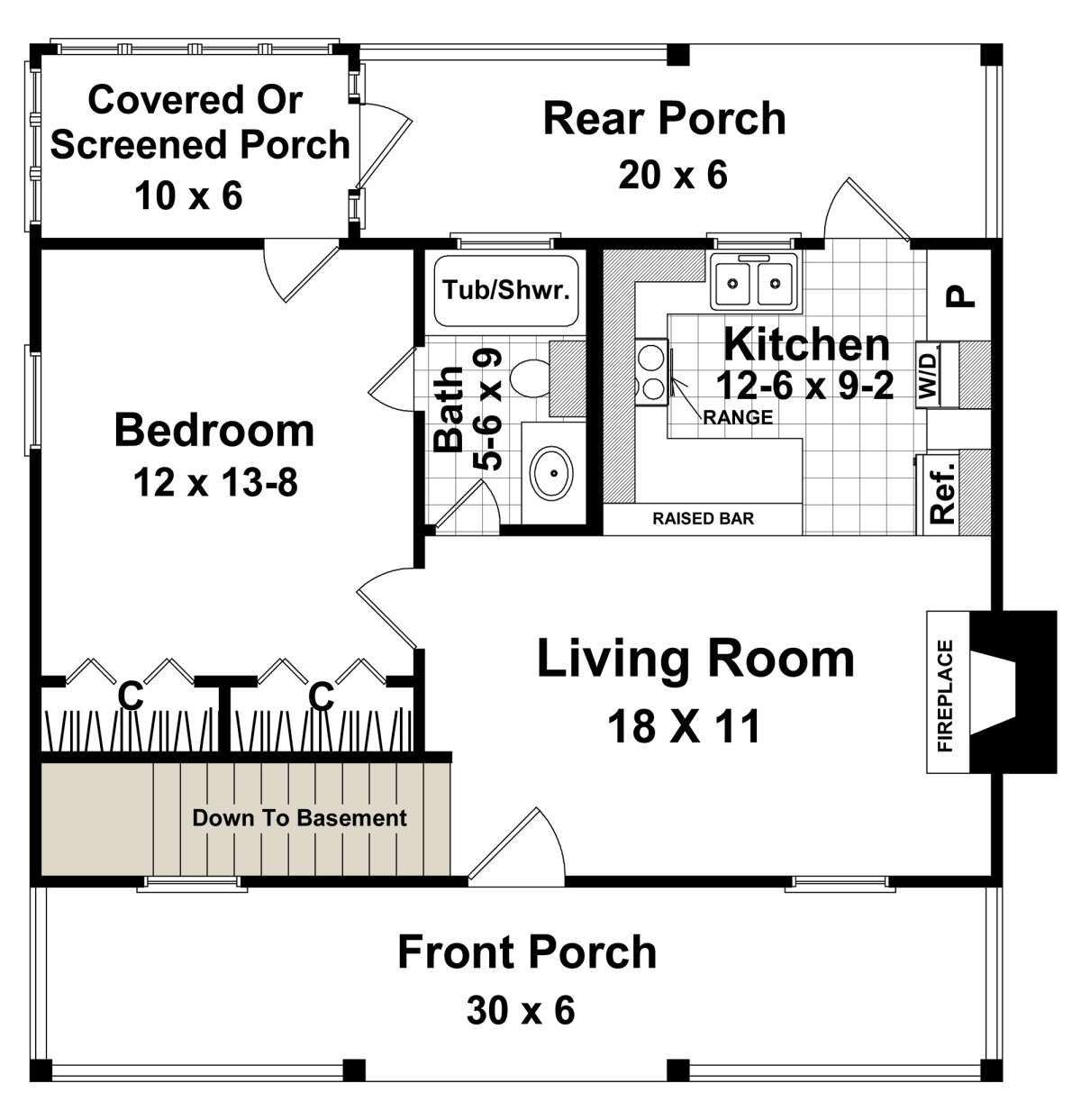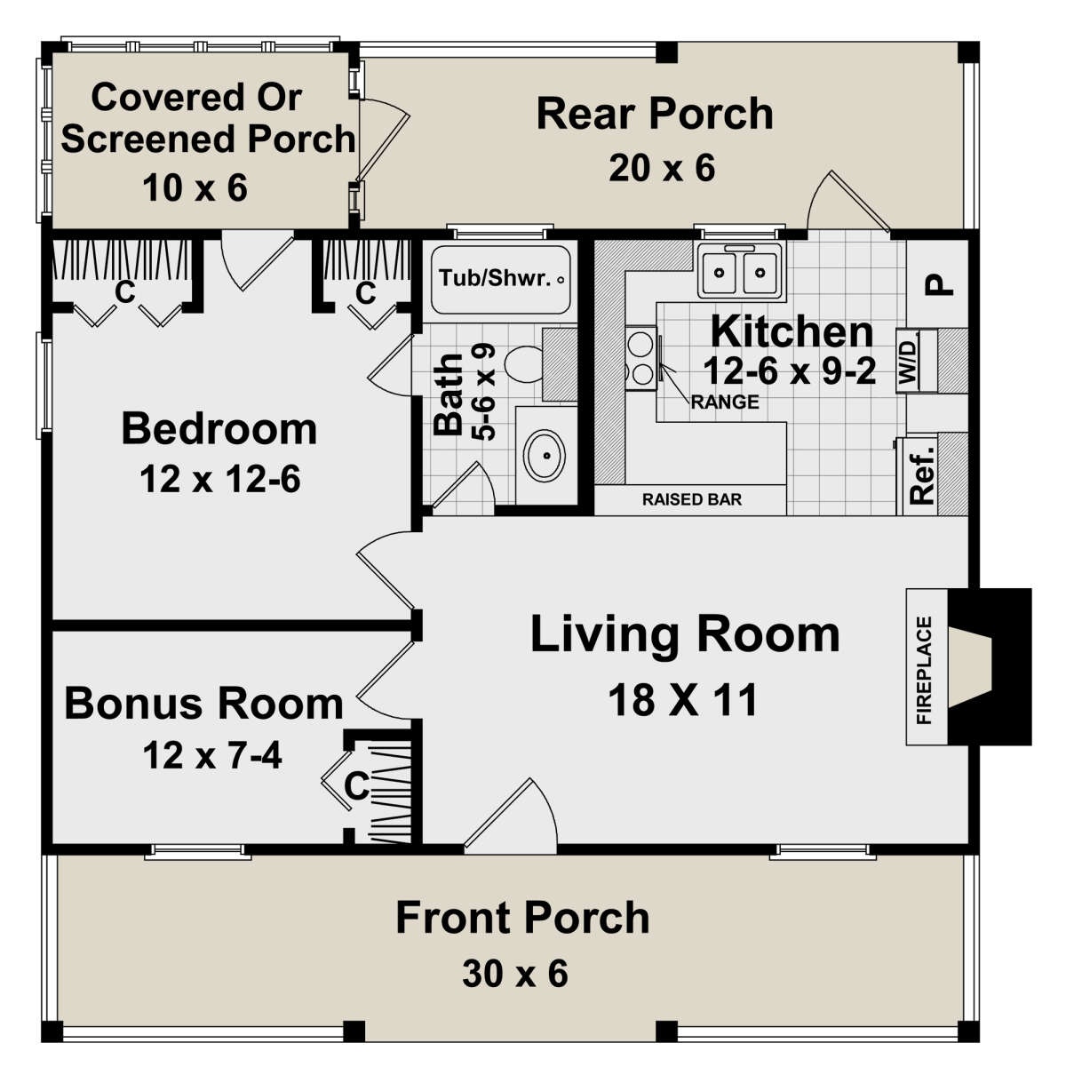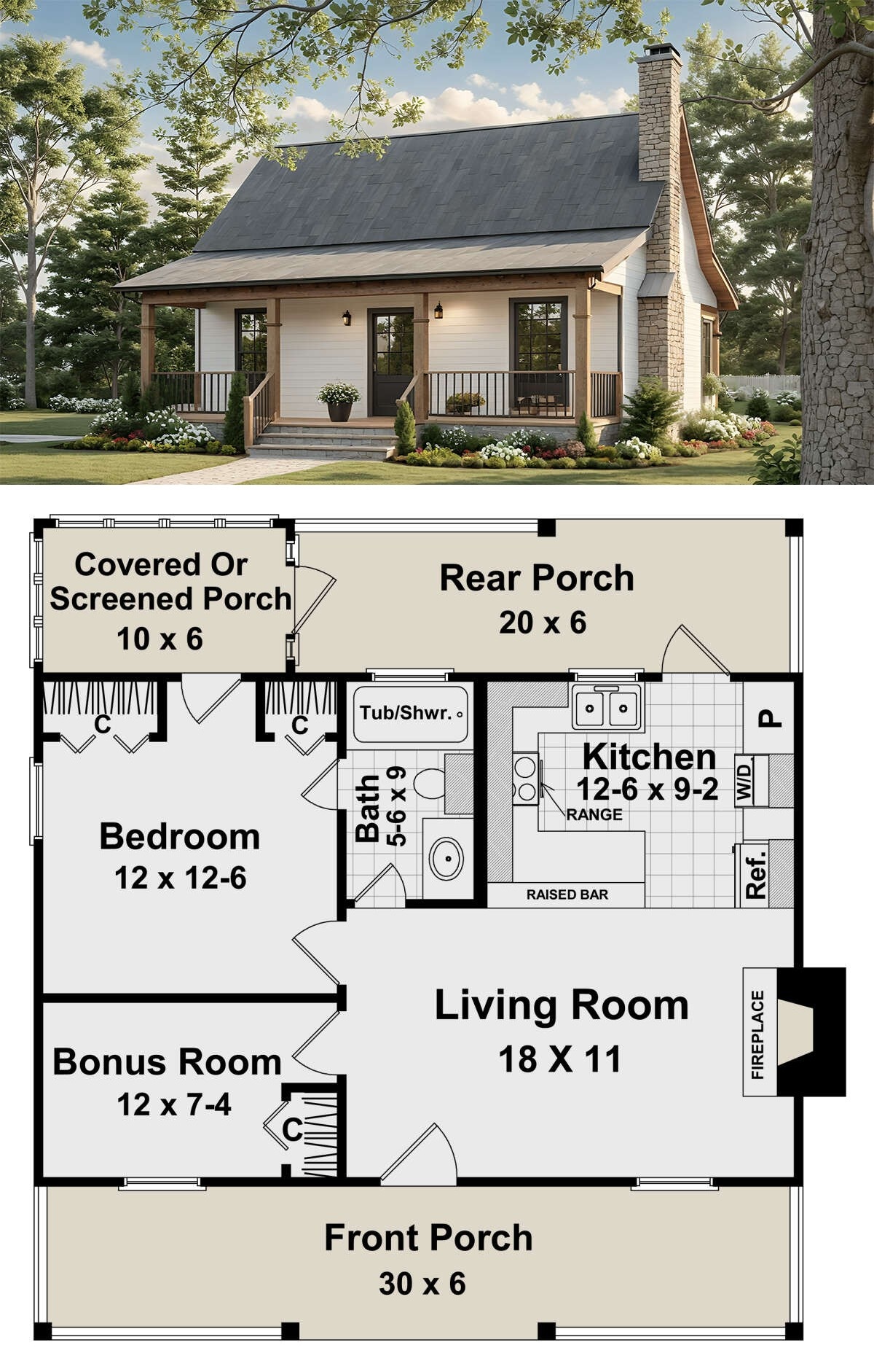 • Porch: covered front porch sized for chairs and a small table