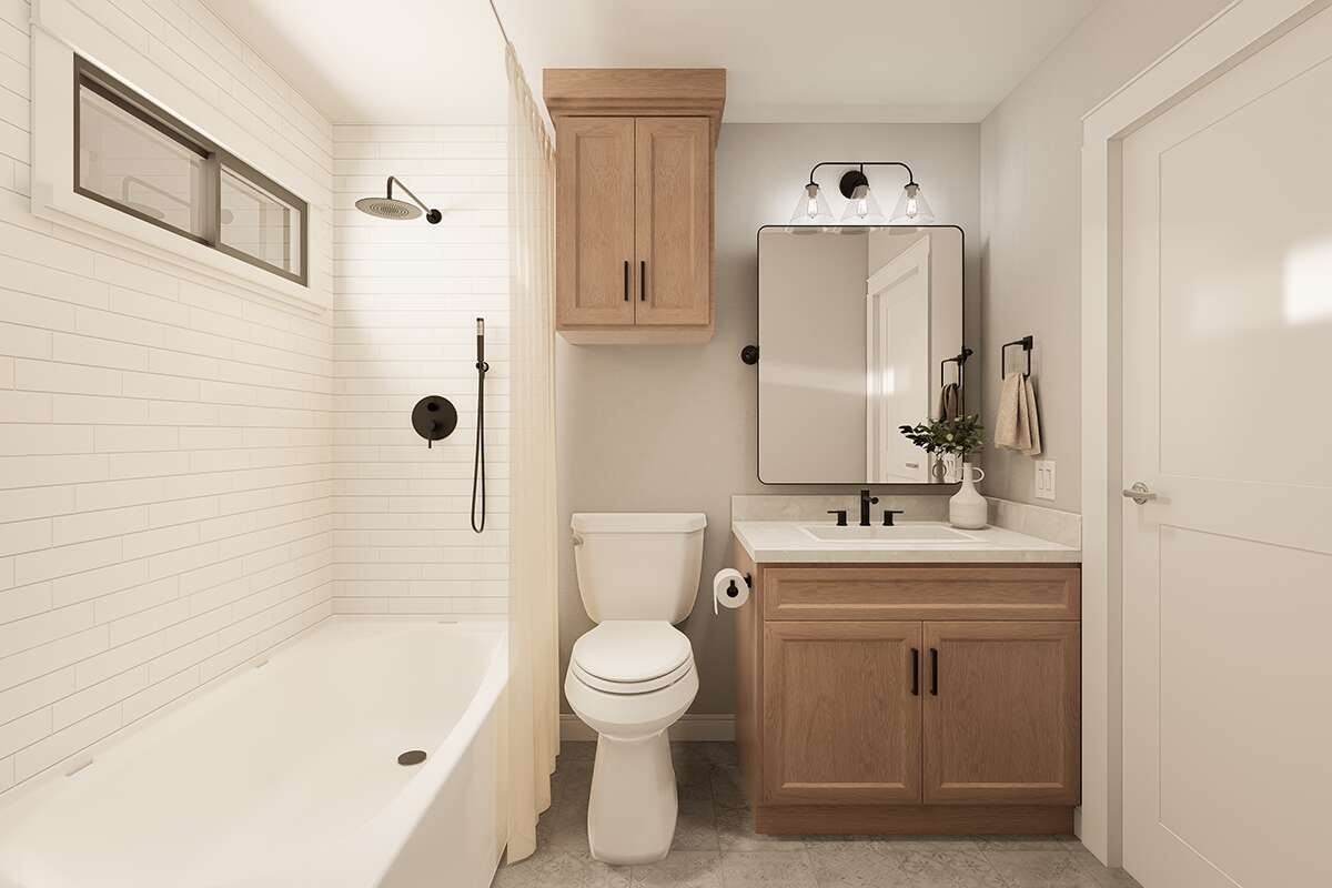 Traffic flow is straightforward. With no long hallways, you gain usable square feet for furniture, storage, and comfortable movement. It’s a “small house, big feel” layout that works for daily routines and weekend guests alike.