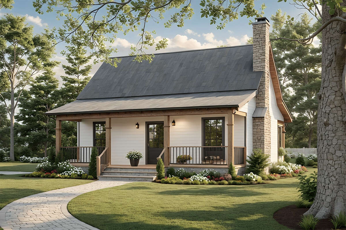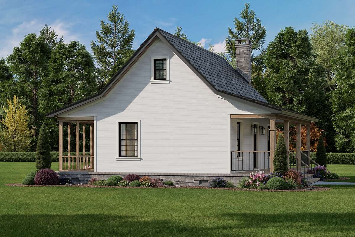 This 600-square-foot modern farmhouse cottage shows how thoughtful design can deliver comfort, style, and flexibility in a small footprint. With an open living core, a restful bedroom, a full bath, and a porch that acts like a second room, it lives larger than its numbers. Whether you’re building a primary home, a guest house, or a cozy retreat, this plan proves that small and smart is a beautiful combination.