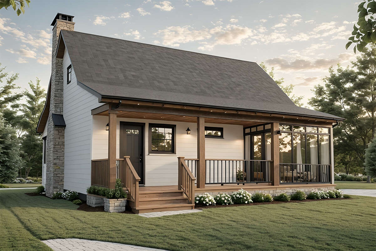This plan suits solo owners, couples, weekenders, and anyone who wants a guest cottage or rental on their property. It’s equally at home at the lake, in a clearing of tall pines, or tucked behind a larger primary residence as an accessory dwelling.
